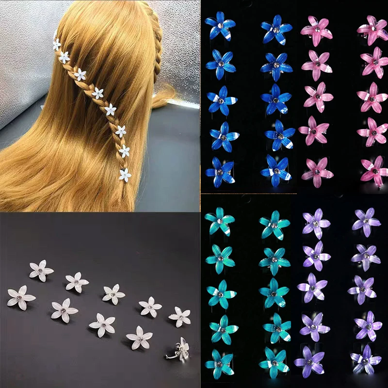 10PCS/Lot Hair Claws Girls Small Pearl Crystal Flowers Metal Hair Clips Women Wedding Bridal Mini Headwear Hair Accessories