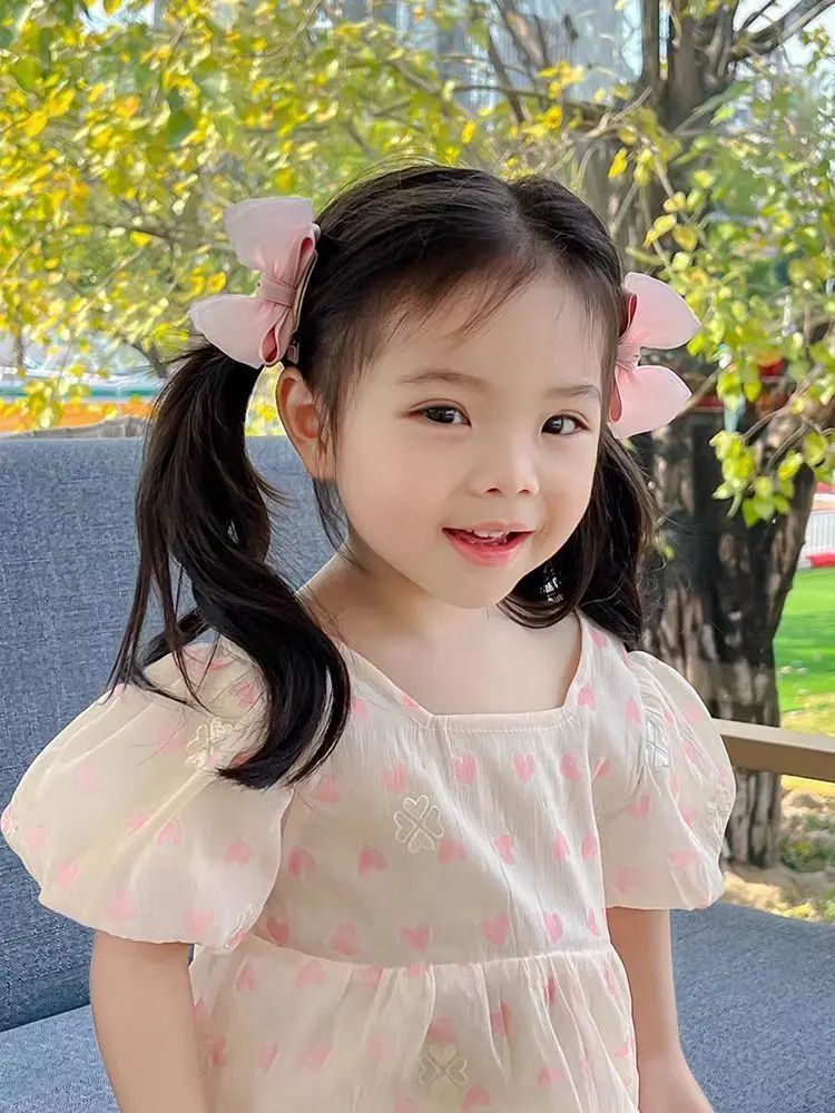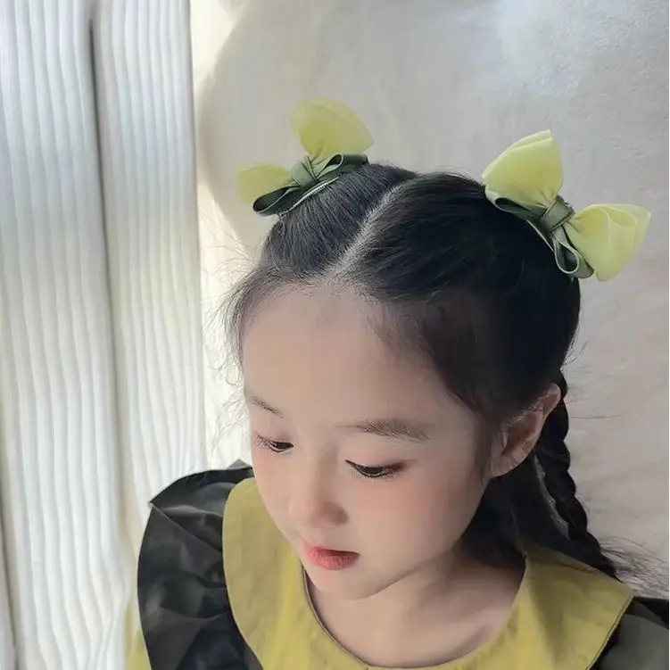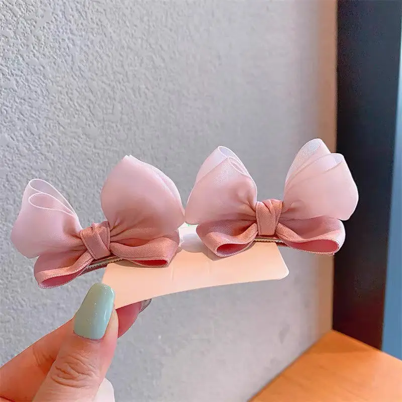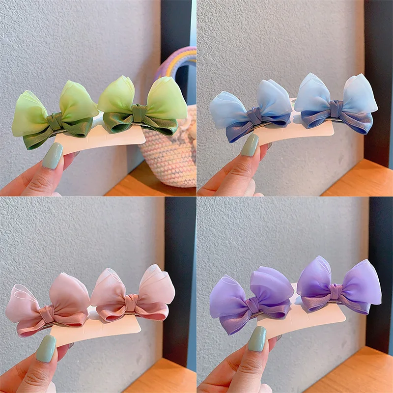 2PCS New Cute Fashion Fresh Yarn Three-dimensional Bow Hair Clips Girls Hairpins Hair Accessories Barrettes Kid Headdress