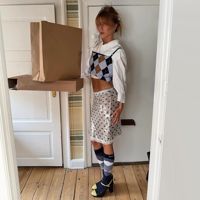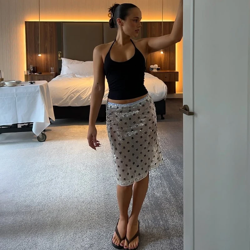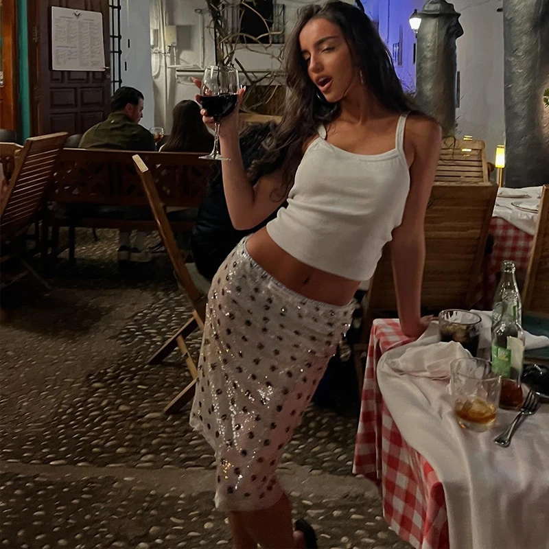 Candyhot Polk Dot Printed Elegant Low Waist Straight Midi Skirt Y2K Summer Fashion Holiday French New All-Match Women Vestidos