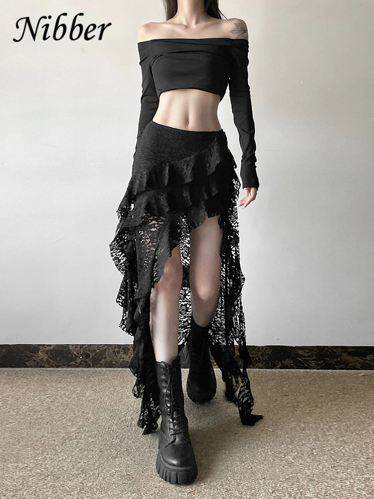 Nibber Tassels Women Skirts Irregular Hem Multi-Layered Ruffles Lace Patchwork Sweet Summer Trend Daily Skinny Versatile Bottoms