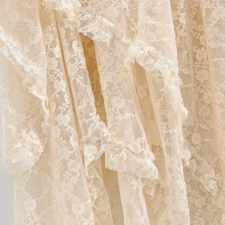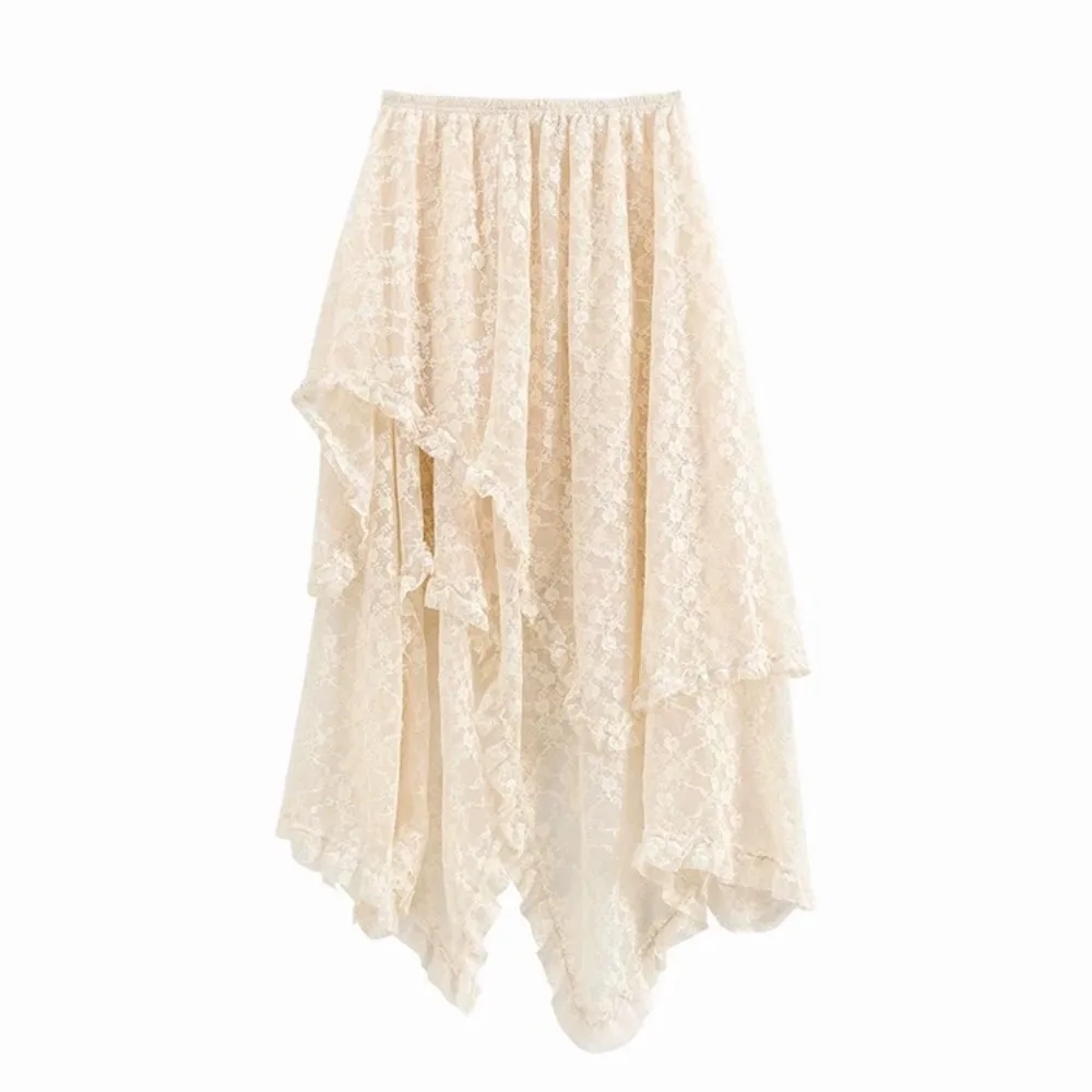 Sexy Lace Irregular Asymmetrical Skirt Fairycore Women Vintage Y2K Boho Aesthetic High Waist Mid Skirts Lady Holiday Outfits