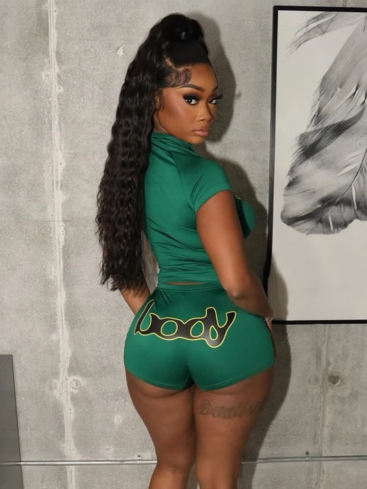 Weird Puss Letter Print Women2 Piece Set Casual Sporty Zip Crop Tops+Shorts Matching Streetwear Stretch Skinny Streetwear Suits
