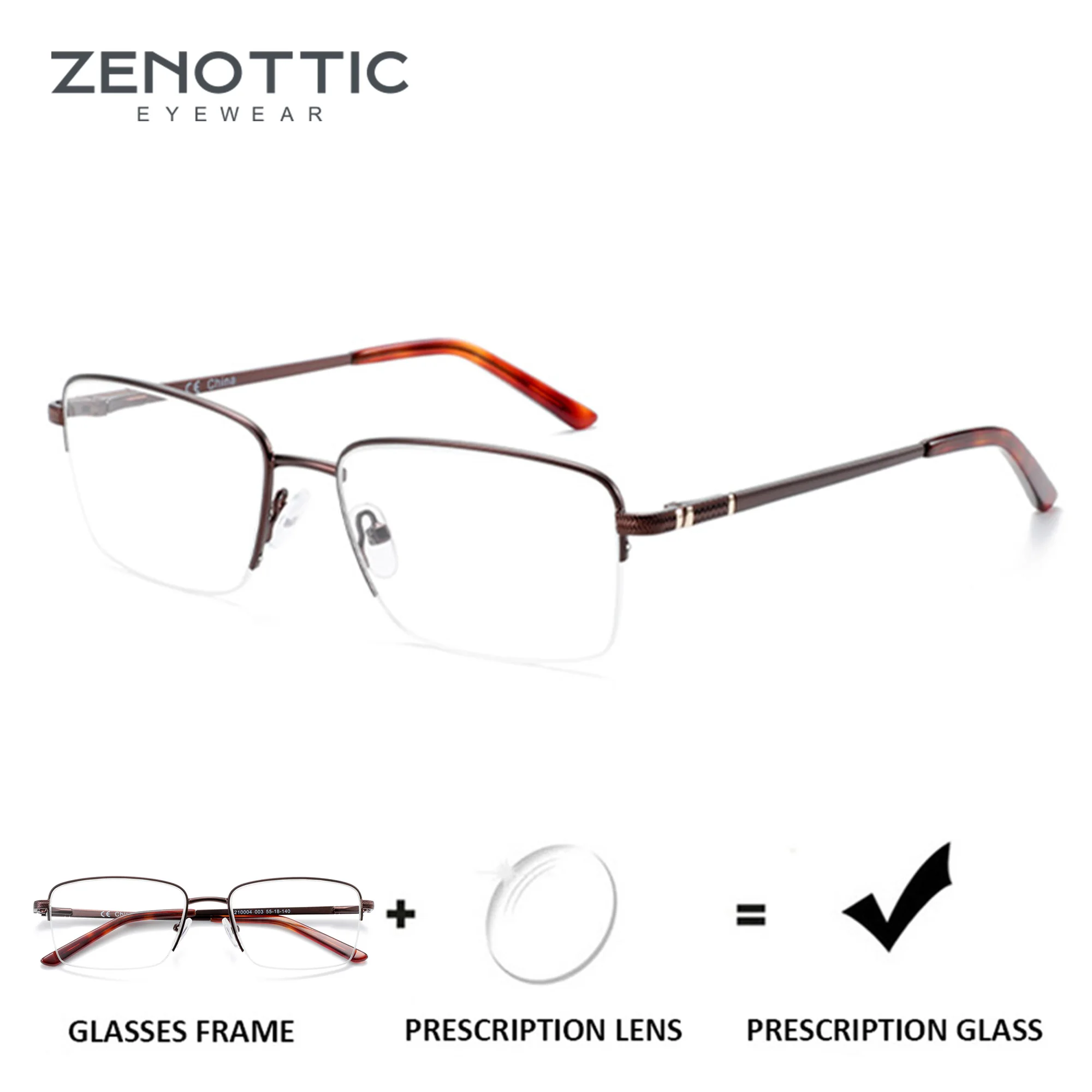 ZENOTTIC Half Rim Prescription Glasses Men Business Optical Spectacles Anti Blue Rays Photochromic Myopia Progressive Eyeglasses